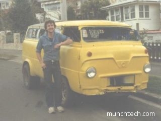 I can't remember all the details of the van (was a very long time ago), but in the end we had put a 289 Ford V8 into it, three stage auto, not sure of the diff, steel rear flares, Mickey Thompson tyres and of course the 8inch roof chop (think it was eight). In this picture the roof chop was tack welded and the front hadn't been extended yet. The rear panels and back door were panelled again.