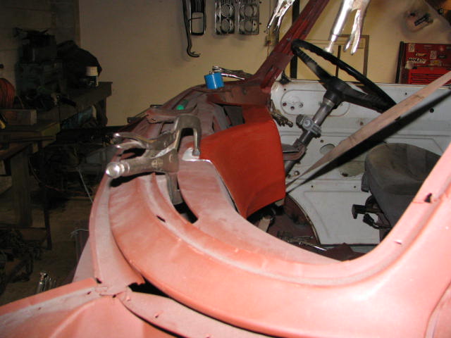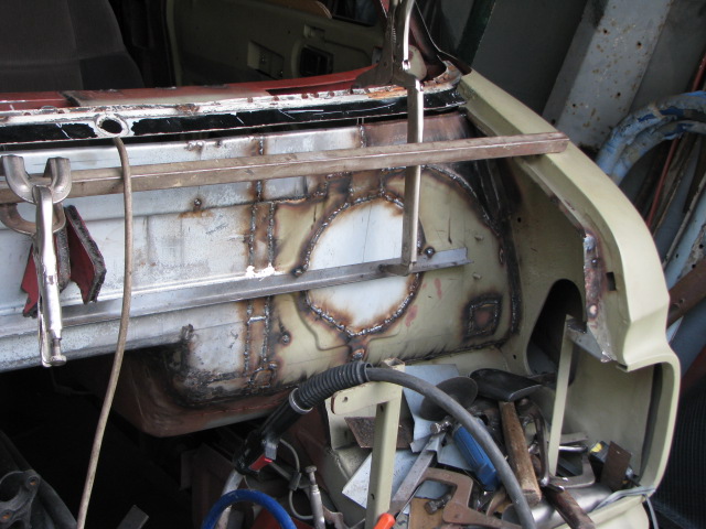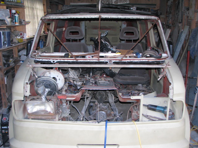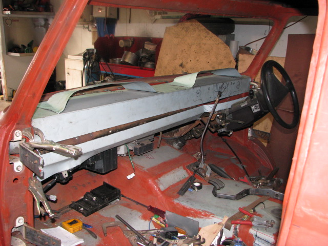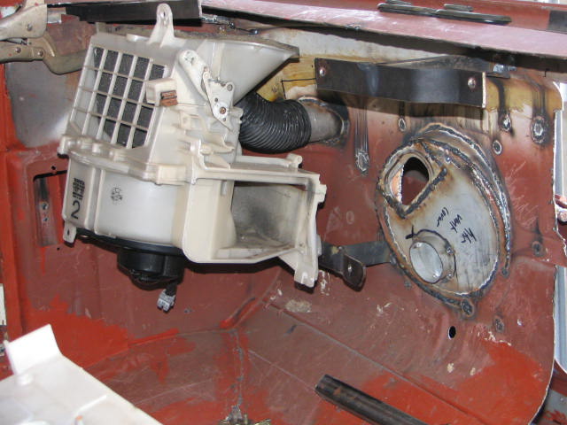Above: Photo 1 & 2: aircon unit with heater. Photo 3 & 4: new firewall after refitting full size windscreen